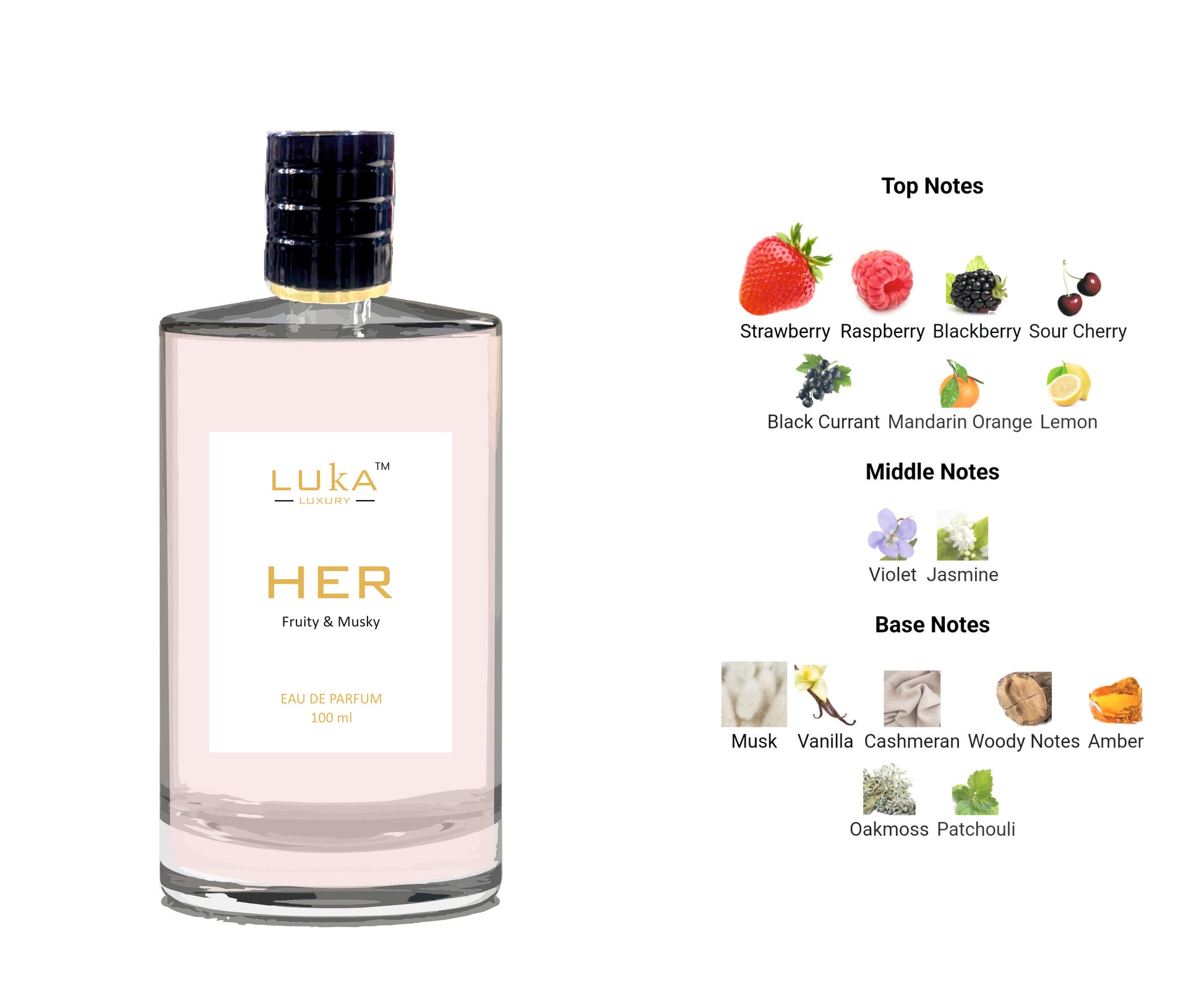 HER Eau De Parfum by LUKA is a Floral Fruity Gourmand fragrance for women.HER has Smooth and sweet aroma.