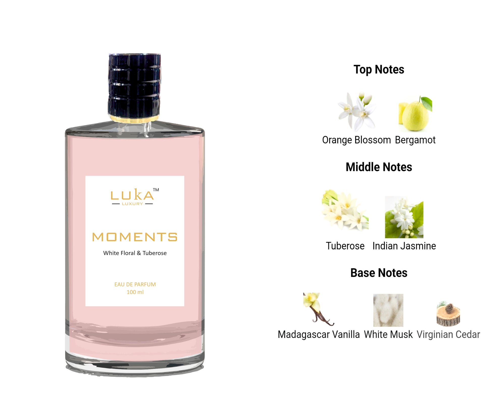 MOMENTS Eau De Parfum by LUKA is a Floral fragrance for women. A Feminine and fresh scent.