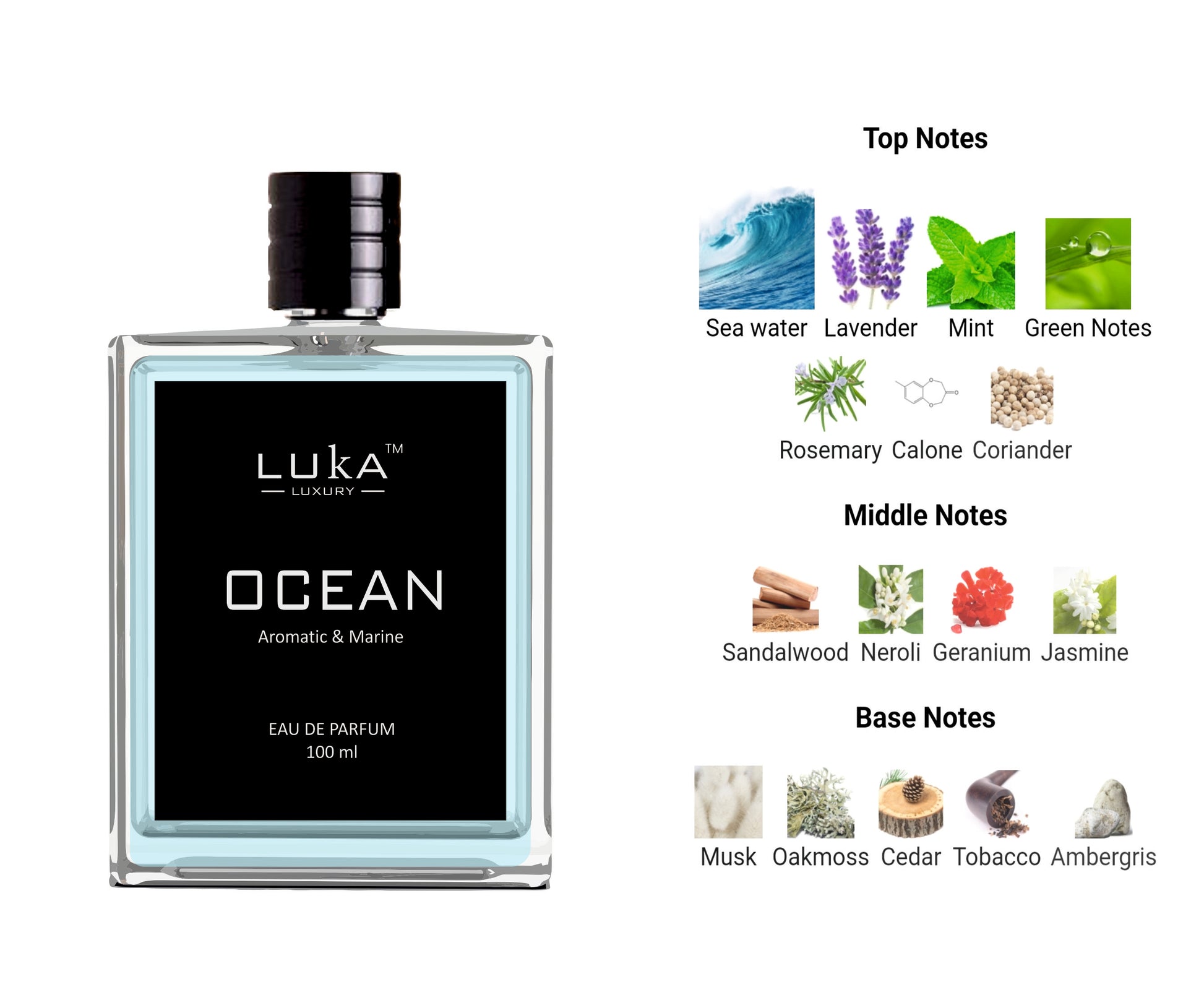 OCEAN Eau De Parfum by LUKA is an Aromatic Aquatic fragrance for men.OCEAN is a fresh and sharp, simple and very masculine.