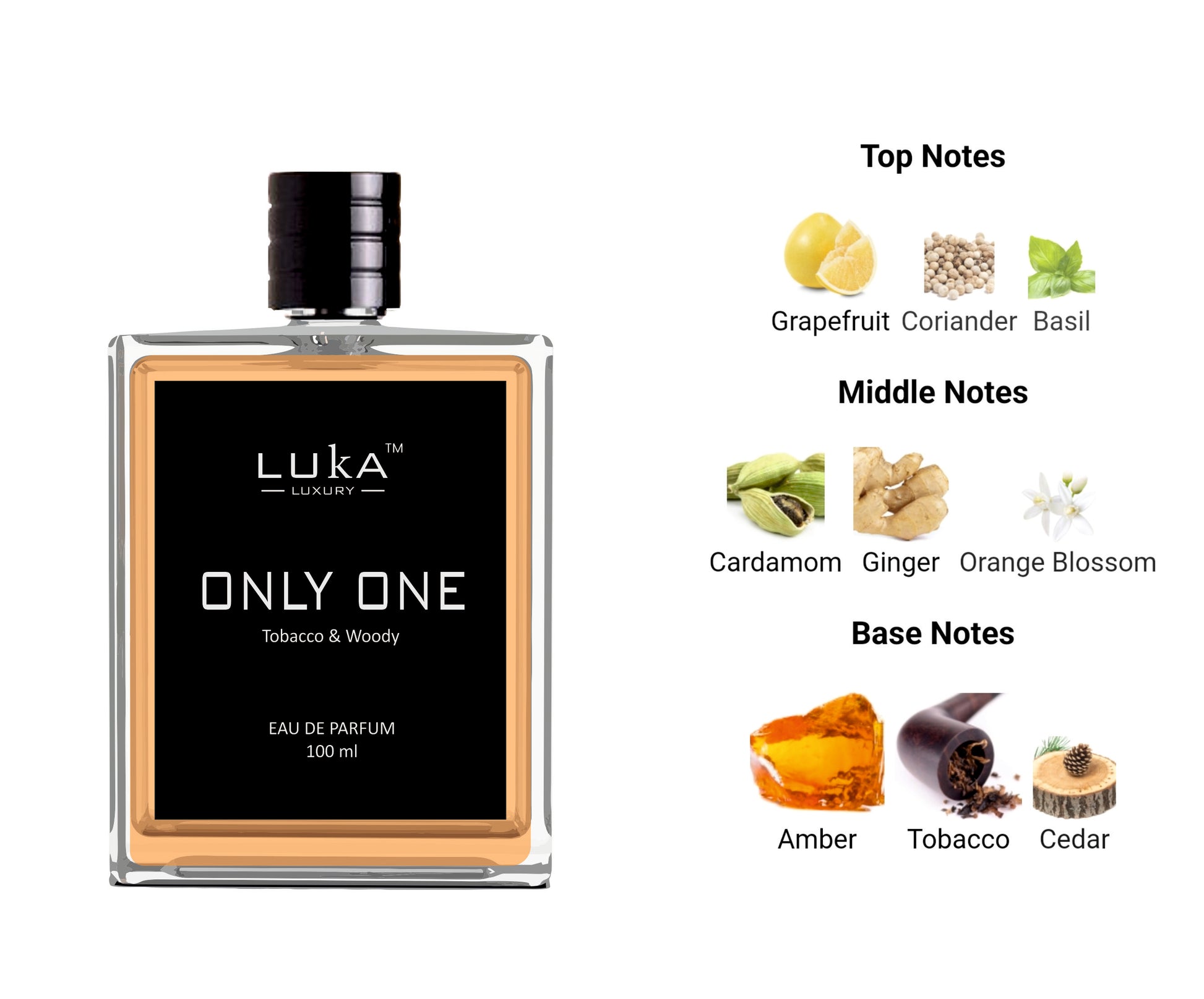 ONLY ONE Eau De Parfum by LUKA is a Woody Spicy fragrance for men.Only One smells hint of sweet yet masculine.