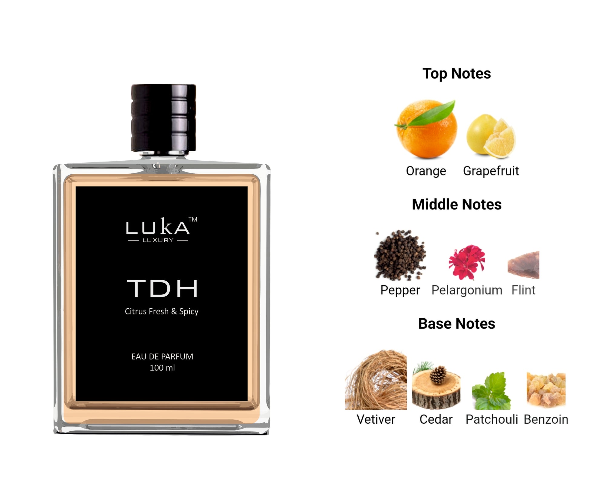 TDH Eau De Parfum by LUKA is a Woody Spicy fragrance for men.TDH is Timeless and appealing to different generations.