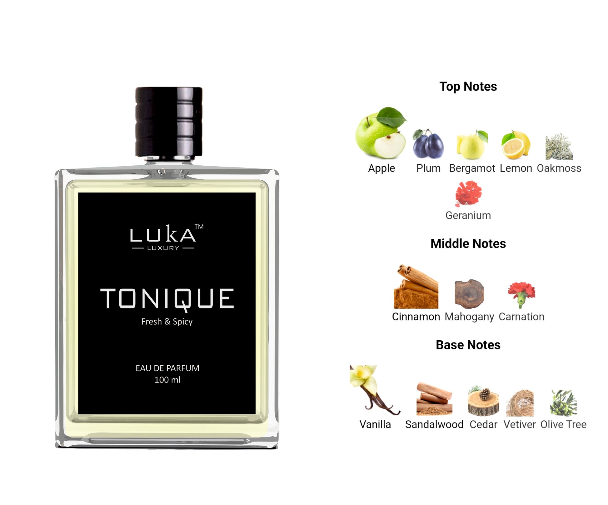 TONIQUE Eau De Parfum by LUKA is a Woody Spicy fragrance for men.It is described as an ideal scent for work and for everyday occasions.