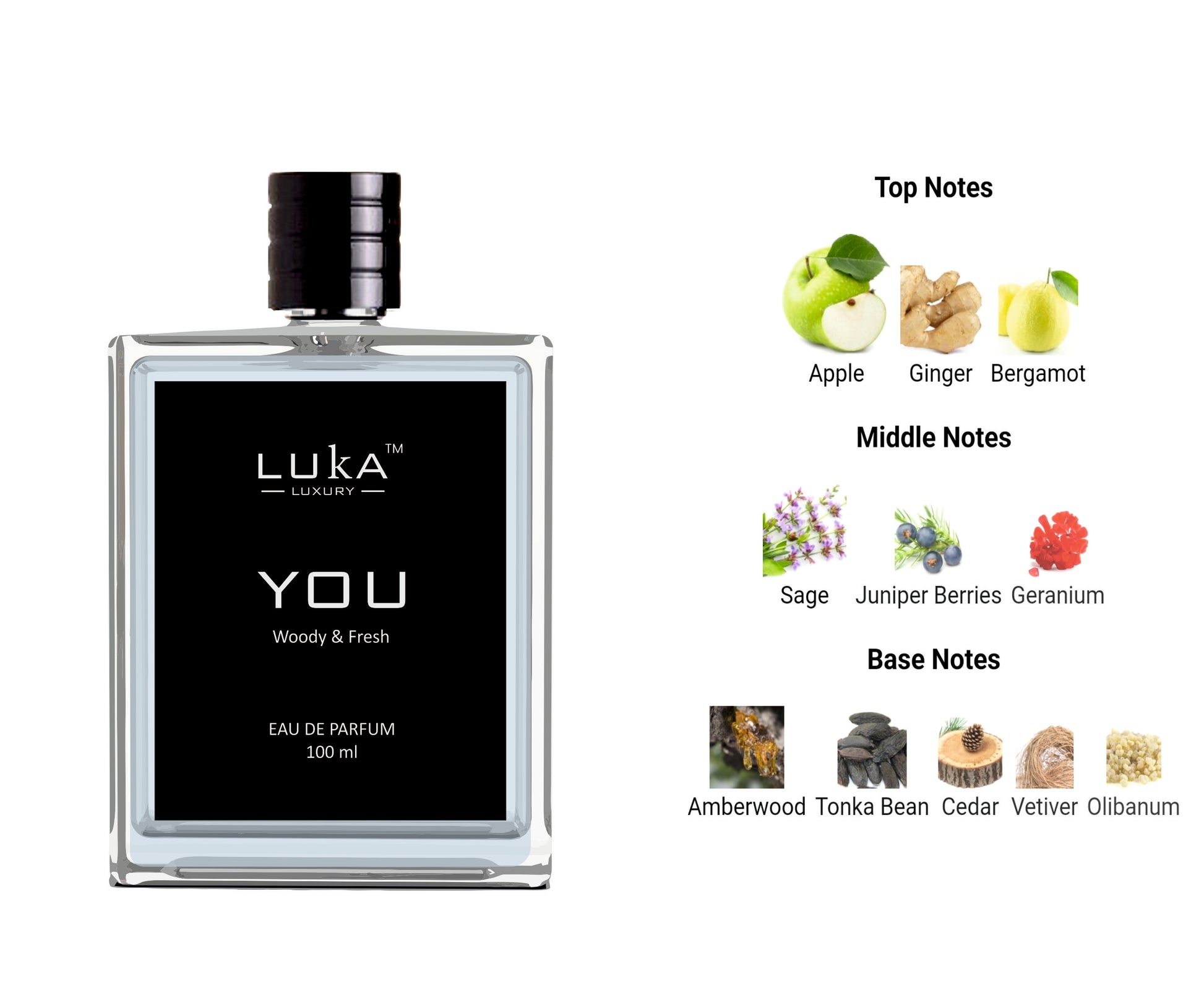 YOU Eau De Parfum by LUKA is an Aromatic Woody Fougere fragrance for men.A Versatile and modern scent.